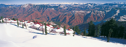 In western Himachal Pradesh, the hill station of Dalhousie is full of old world charm and holds lingering echos of the Raj era. The town is surrounded by varied vegetation - pines, deodars, oaks and flowering rhododendron. Dalhousie has charming colonial architecture, including some beautiful churches. Its location presents panoramic views of the plains and like a long silver line, the river Ravi twists and turns below Dalhousie. The spectacular snow-covered Dhauladhar mountains are also visible form this enchanting town. A year-round destination, but attracts most of its tourists during the summer.